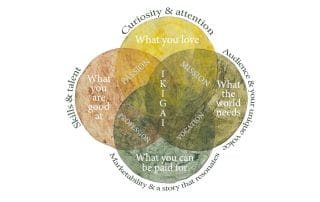 At a practical level, it is helpful to develop an understanding of your creative purpose by thinking about it through 4 lenses: your passion, mission, profession and vocation. If you’re interested in thinking about your own Ikigai, take a moment to make a few notes about what each of these mean to you.